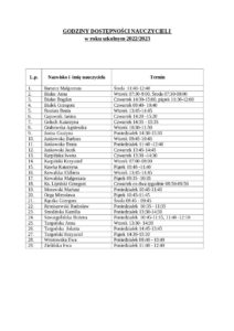 Zaktualizowano w dniu 5 października, 20225 października, 2022 Wykaz dostępności nauczycieli admin Publikujemy wykaz dostępności nauczycieli dla uczniów i rodziców w roku szkolnym 2022/2023.