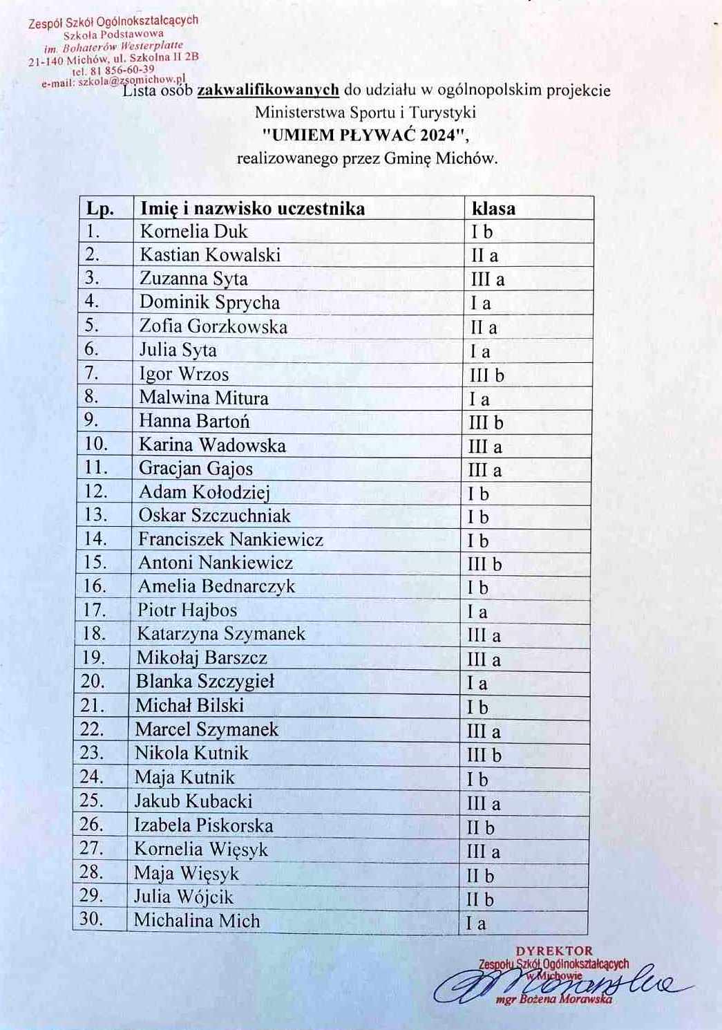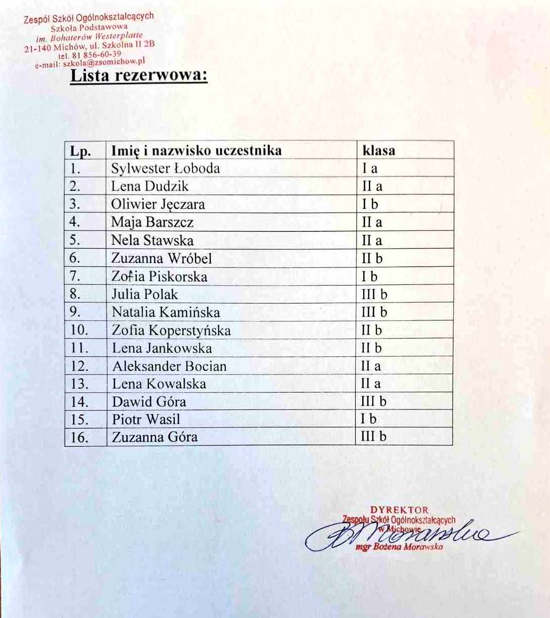 Zaktualizowano w dniu 21 marca, 201721 marca, 2017Lista uczniów zakwalifikowanych do klasy IVb sportowej